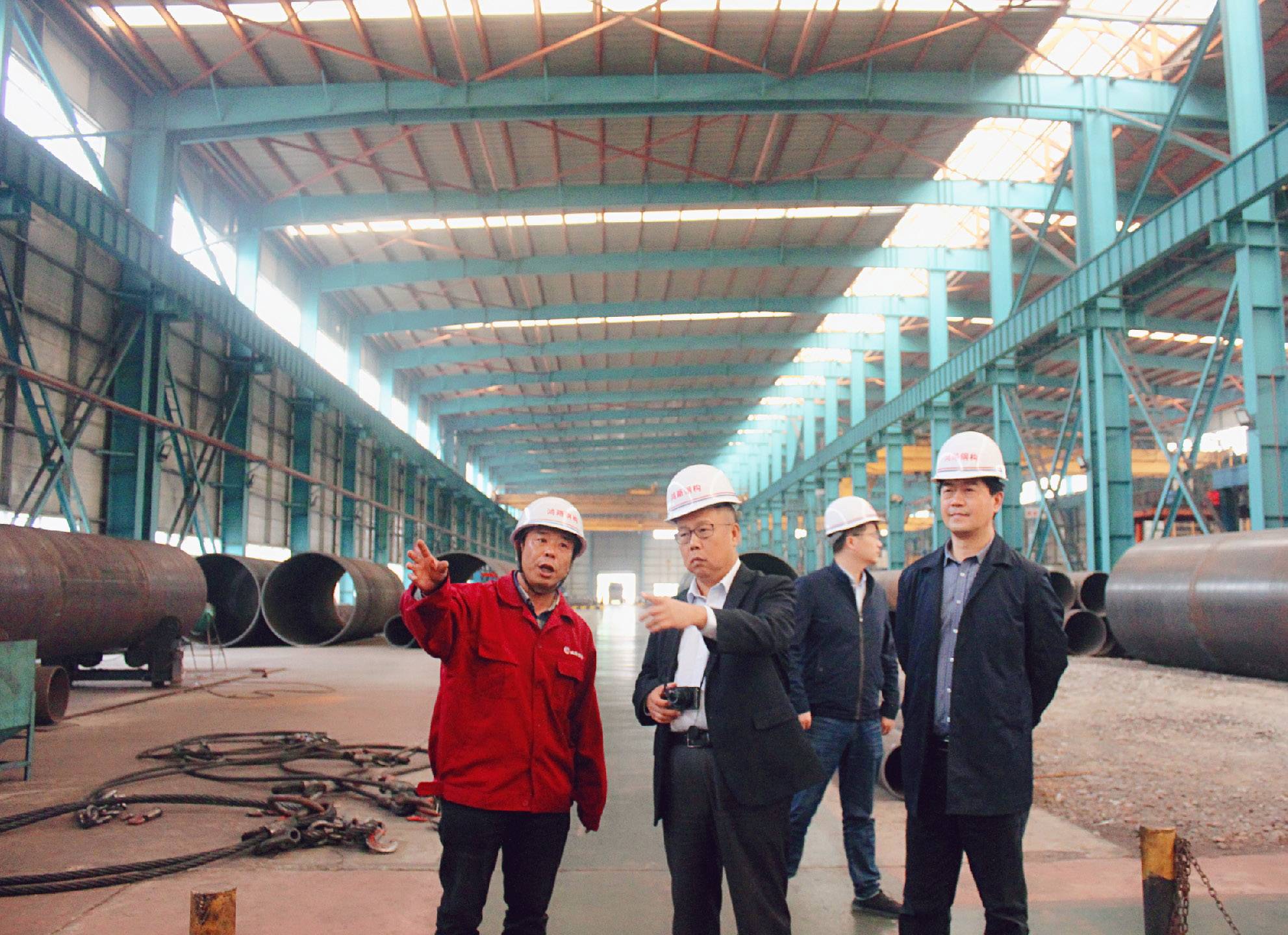 在王總、孫總的陪同下,觀看了鴻路宣傳片并實地來到位于公司旁邊的安徽最大的裝配式建筑鳳棲苑項目現(xiàn)場,聽取了裝配式建筑情況介紹。其后又陸續(xù)到公司的JCOE制管加工車間、PC構(gòu)件的生產(chǎn)車間、智能化生產(chǎn)車間等生產(chǎn)加工車間各環(huán)節(jié)參觀。
