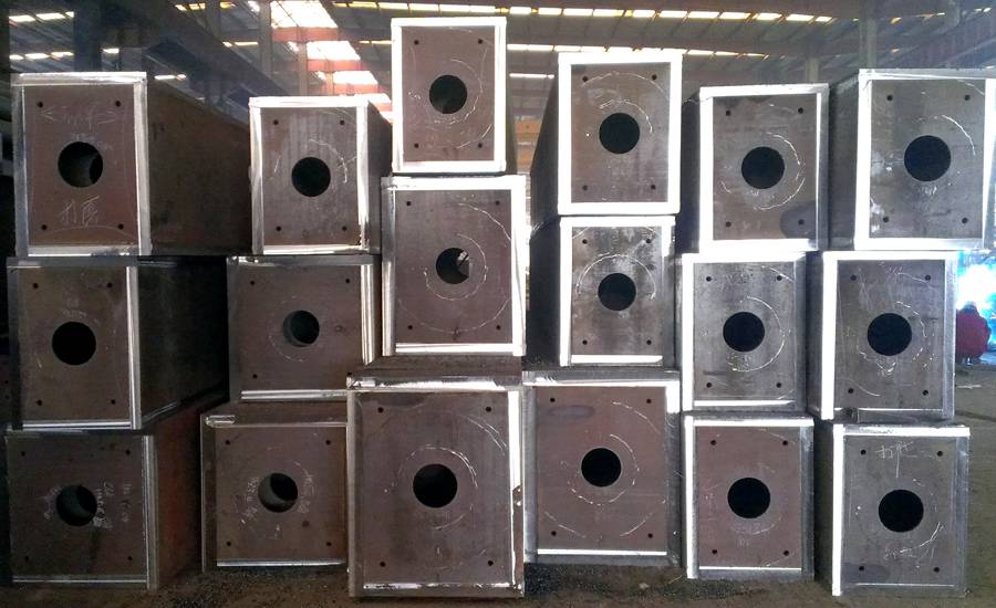 該項(xiàng)目焊縫質(zhì)量要求高,對(duì)焊接箱型截面鋼柱在框架梁梁高及其上下各600mm節(jié)點(diǎn)范圍內(nèi),柱壁板間的焊縫以及焊接箱型截面、H型截面鋼柱接頭等位置工廠都采用開坡口的全熔透一級(jí)焊縫。另外,因箱型柱板厚達(dá)40—50mm,焊接難度大,工廠加強(qiáng)工藝方法研究,確定合理的焊接順序,保證焊縫質(zhì)量。在焊接完成后,工廠采用專門的端面銑工具,對(duì)箱型柱進(jìn)行端銑,端銑后的箱型柱表面平整,端面光亮美觀,為構(gòu)件的順利安裝提供了保證。