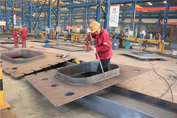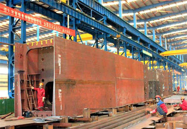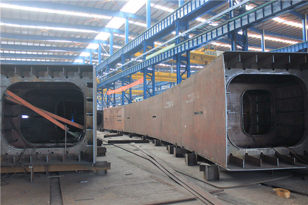 由于構件截面較大且重量也大,待構件制作完成時,只能采用人工噴砂。為使噴砂等級滿足設計工藝要求,公司采用專業(yè)的噴砂技術以及設備進行橋梁噴砂涂裝。目前工廠安排四臺數(shù)控下料機24小時連續(xù)作業(yè),已完成下料1800余噸;主縱梁48#節(jié)段組裝完成,正在進行整體焊接作業(yè);主縱梁47#節(jié)段正在組裝。