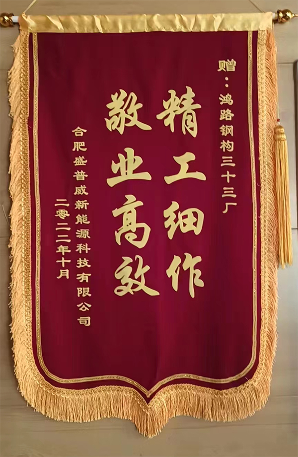 精工細(xì)作 敬業(yè)高效 合肥盛普威新能源科技有限公司致謝送錦旗